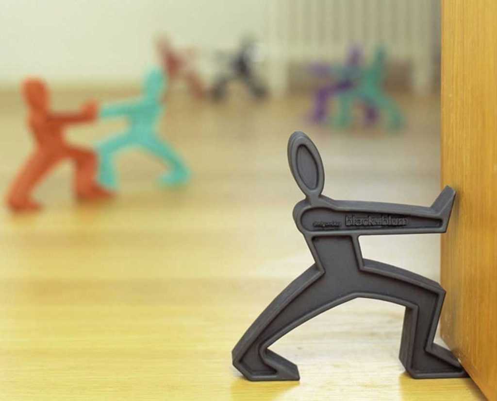 - Мобильные. Надеваются на нижнюю часть створки, распахнутой в нужном положении, или просто подкладываются под неё. Выполняют роль клина и служат для фиксации двери в нужном положении. Многообразие форм и расцветок позволяет превратить это простейшее устройство в оригинальную и стильную деталь интерьера.