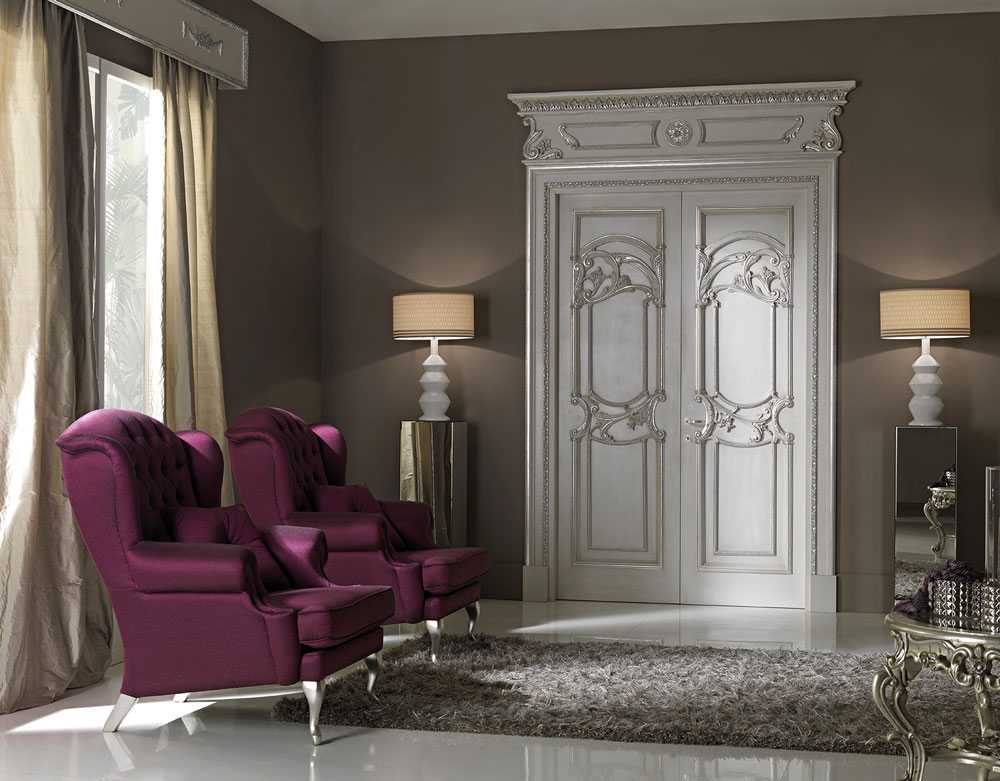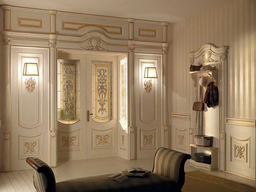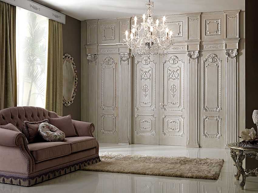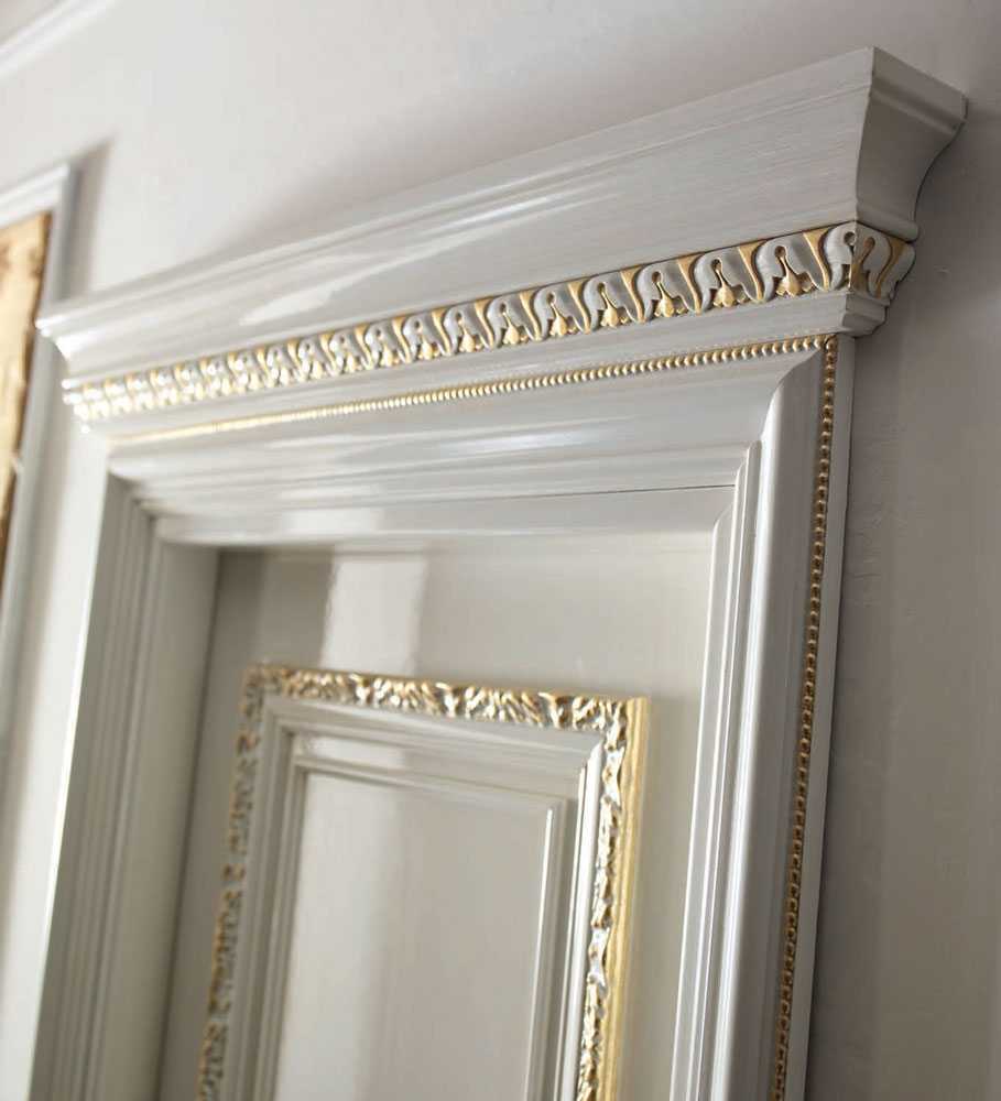 - Классические межкомнатные двери с повышенной ценой часто бывают дополнены капителями, пилястрами и карнизами. Эти элементы характерны для итальянского направления классики, они существенно увеличивают стоимость изделий.