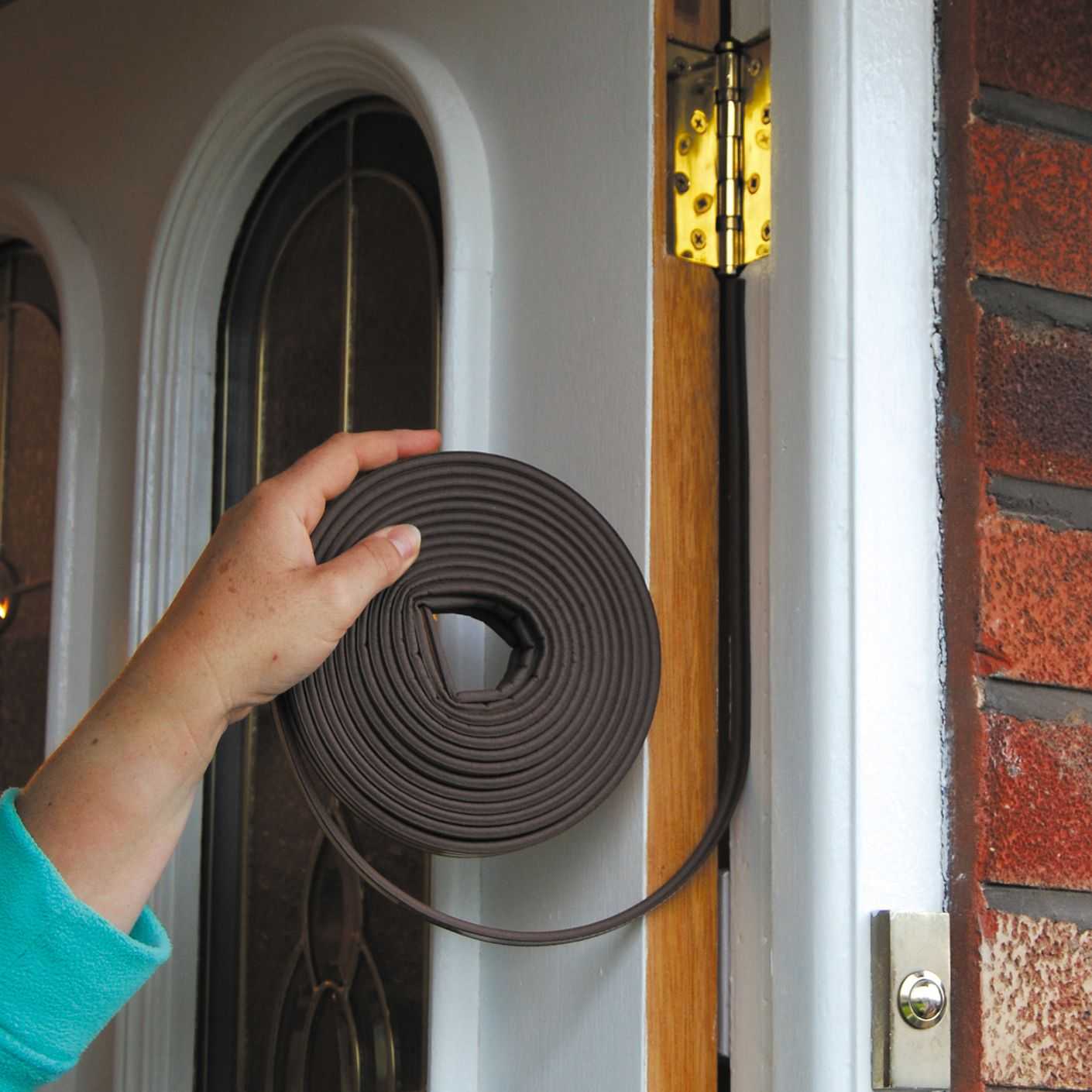 Для устранения продувания дверей через зазор используют D-образные самоклеящиеся резиновые уплотнители. Перед тем как наклеивать уплотнитель, обезжиривают поверхность, протирая ее уайт-спиритом. Затем снимают защитную пленку и прижимают уплотнитель к дверной коробке по всему периметру.
