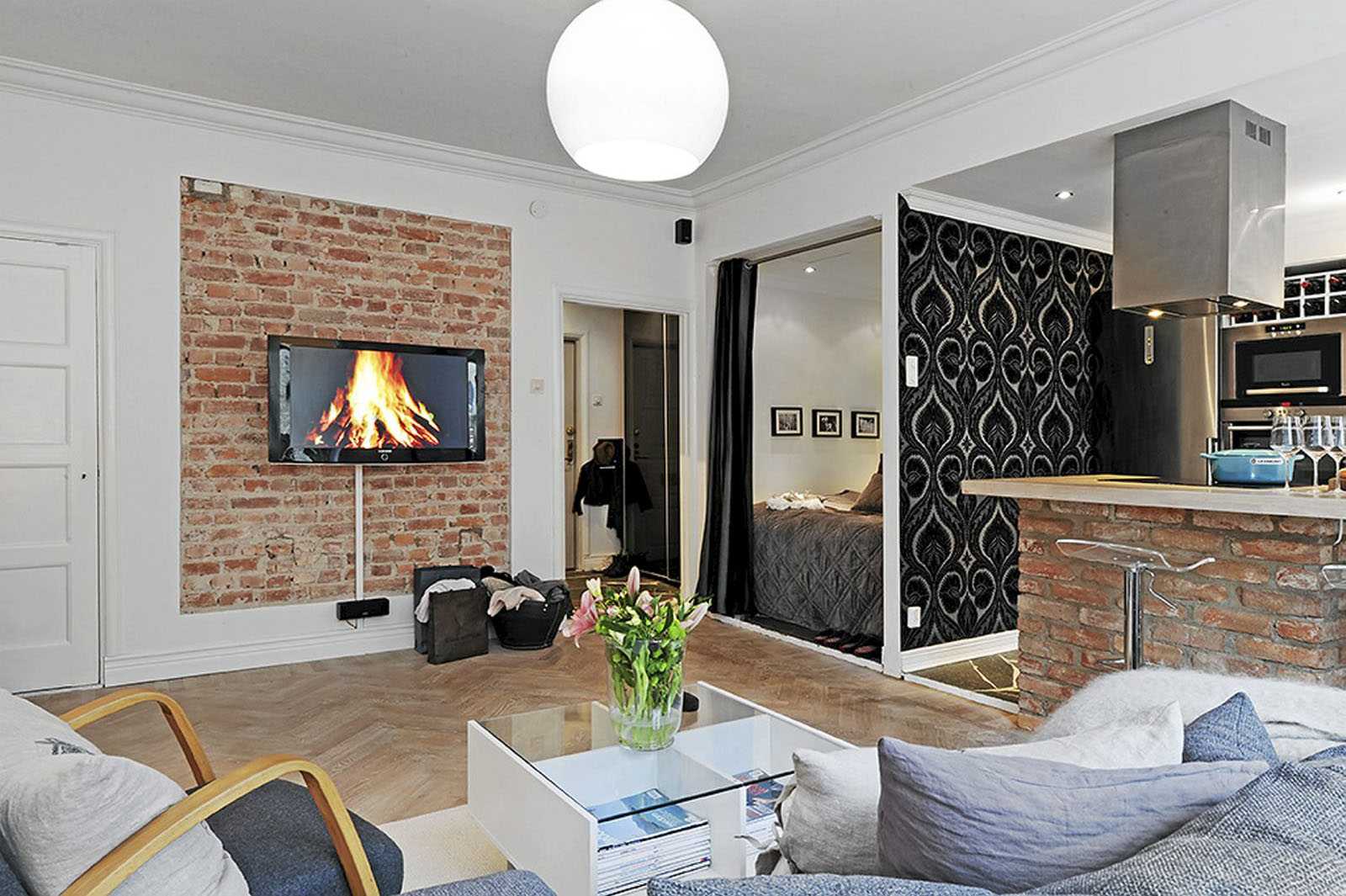 Дополнительный бонус, не связанный с эстетикой помещения, – отличная звукоизоляция. «Кирпичную» стену создают с помощью стеновых панелей, клинкера, декоративной штукатурки. Дополнительный слой препятствует прохождению посторонних звуков.