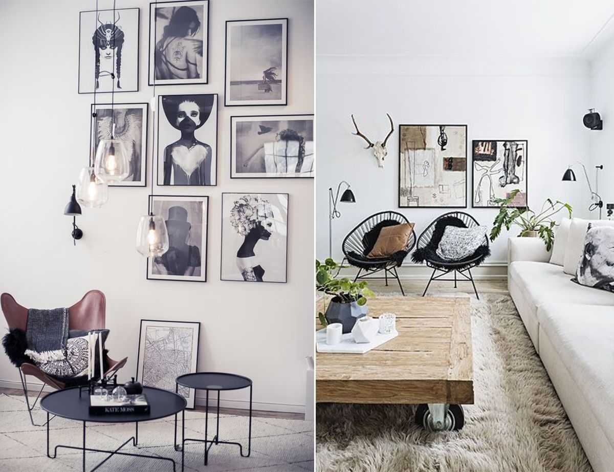 Монохромность северного интерьера разбавляют яркими и простыми аксессуарами. Это семейные фото в лаконичных деревянных рамках, уютные диванные подушки, украшенные этническими узорами. В тренде вязаные чехлы ручной или машинной вязки с рисунком в виде объемных кос.