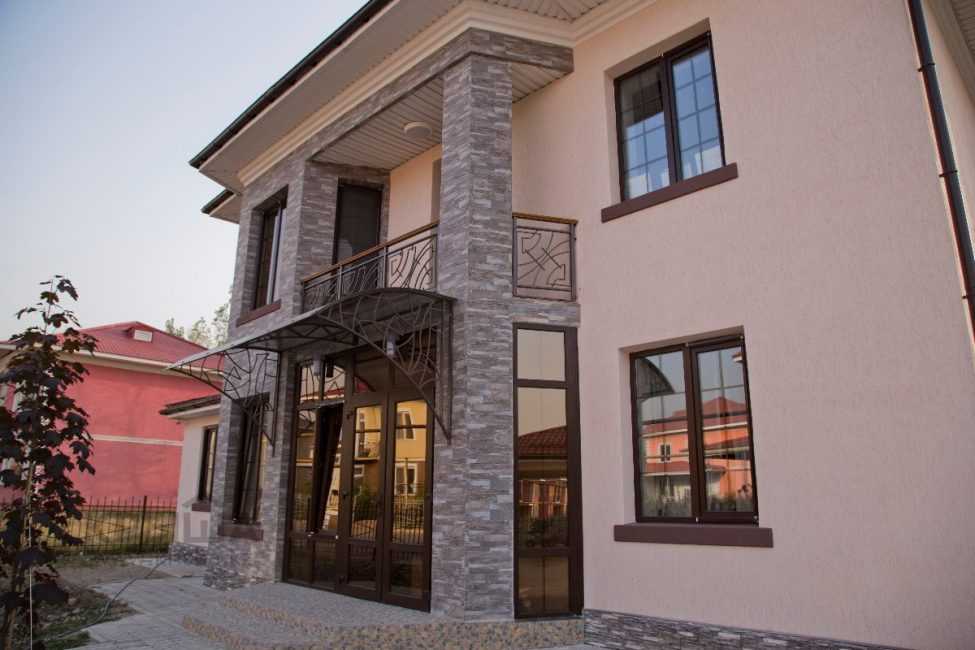 Конструкция из пластика на каменном фасаде