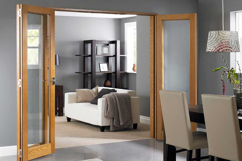 Складные. Такая дверная система включает в себя створки, которые способны складываться по типу «гармошка». Это необычный, и в то же время экономичный вариант межкомнатных дверей.