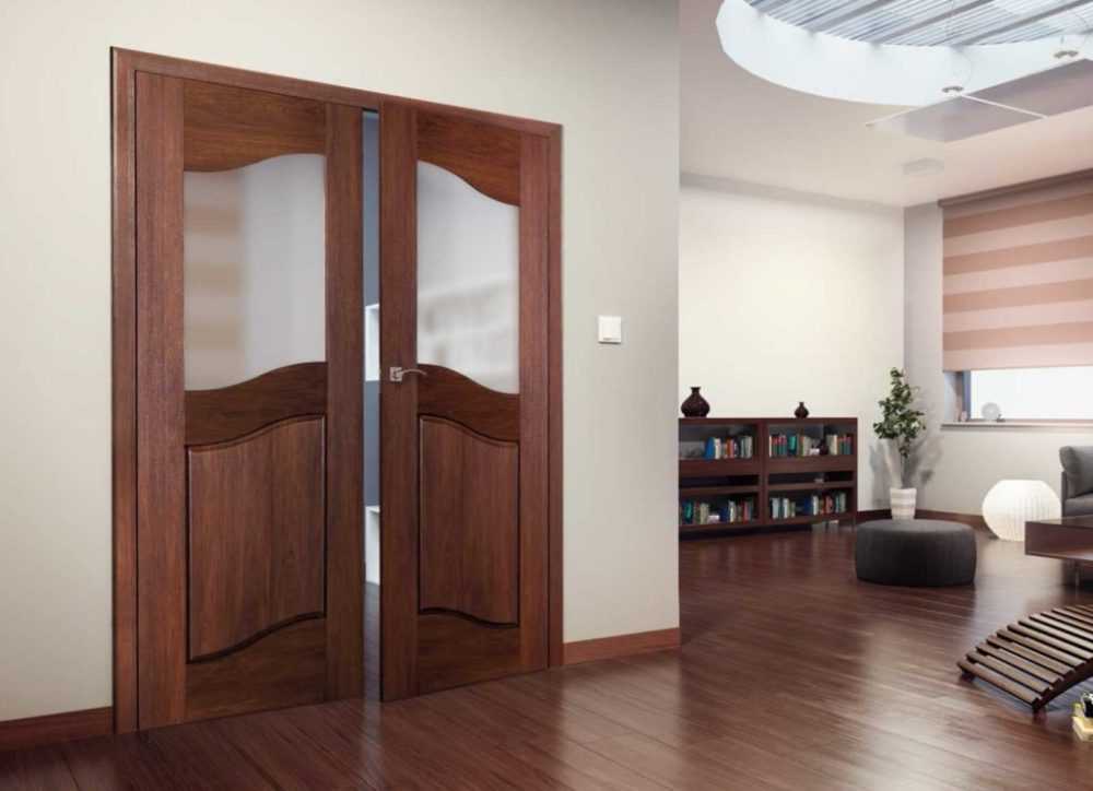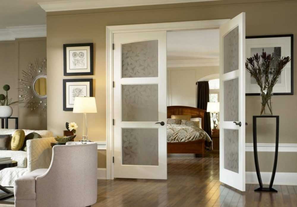 Эстетическая привлекательность. Двойные двери в качестве межкомнатных гармонично вписываются в просторных гостиных, могут иметь интересный дизайн, оснащаться декоративными вставками.