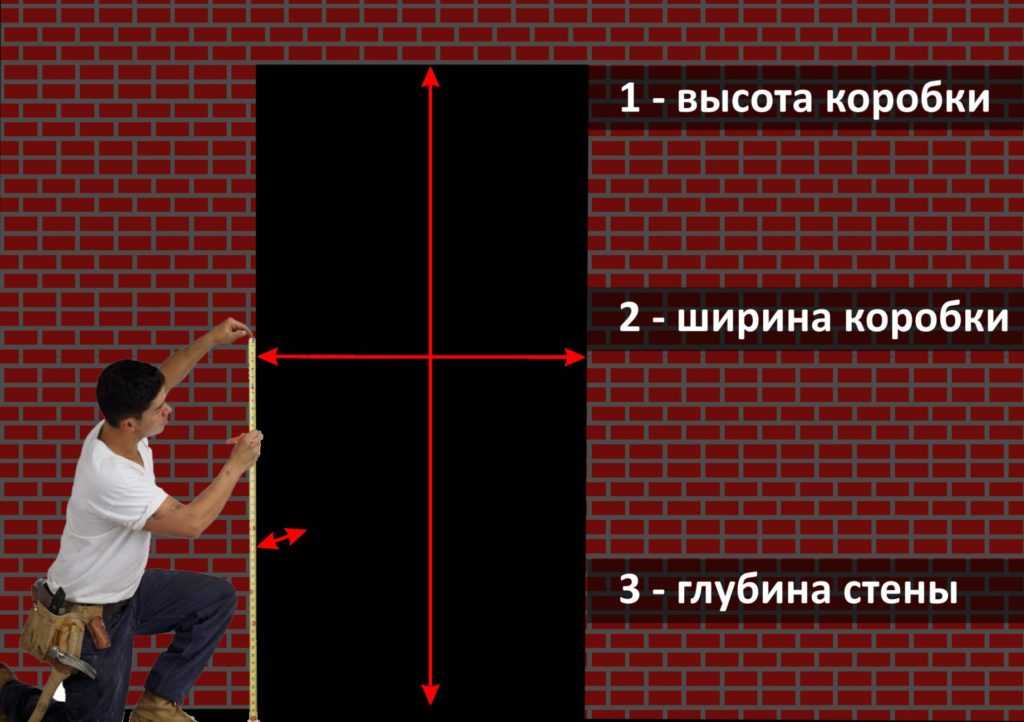 Как правило, готовые дверные коробки продаются под определённый стандарт полотна (или двух полотен в двустворчатом варианте). Если есть необходимость в предварительных замерах, то дверная рама измеряется по поверхности примыкания к отверстию стены.