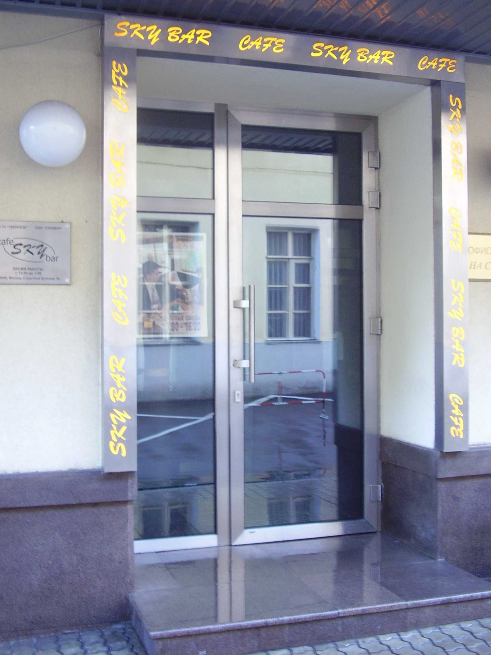 Использование алюминия в качестве конструкционного материала сулит массу преимуществ. Он дешевле экструдированного пластика, более износостоек, его прочностные характеристики позволяют застеклять обширные поверхности – целые фасады. На основе алюминиевых профилей легко создаются не только распашные и откидные конструкции, но и раздвижные, «маятниковые» и тому подобные алюминиевые двери входных групп.