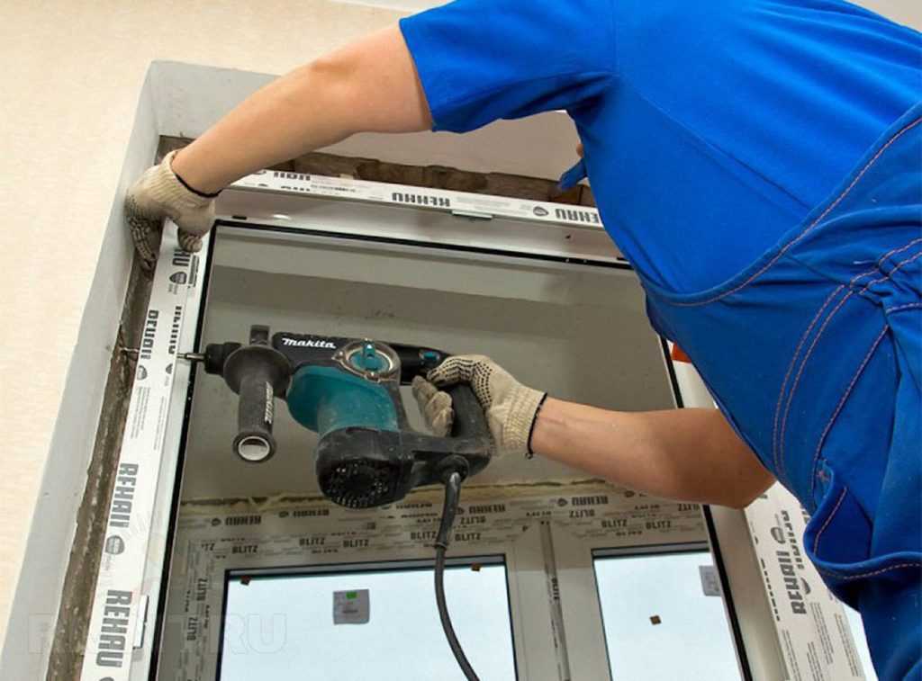 Рама устанавливается в проём, после чего её насквозь просверливают по бокам и в верхней части: отступы от углов створки составляют по 30 см с каждой стороны.