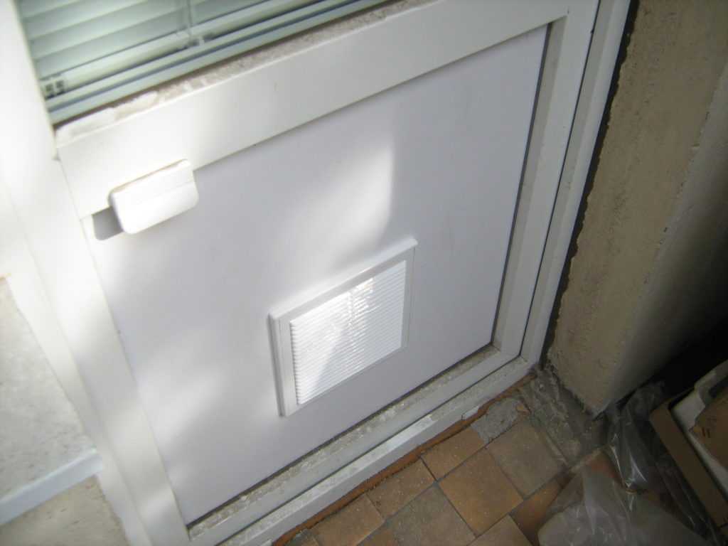 - Проделают в двери отверстие нужного размера и установят решетку.