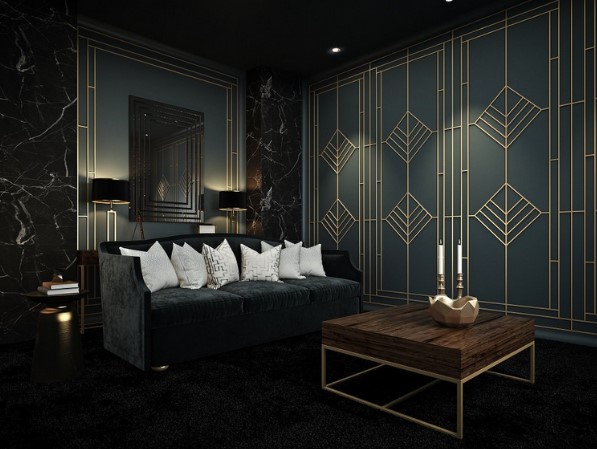 Описание стиля интерьера арт-деко сводится к трем словам — симметрия, фактура, свет. Если эти три компонента присутствуют, значит, композиция сложилась.